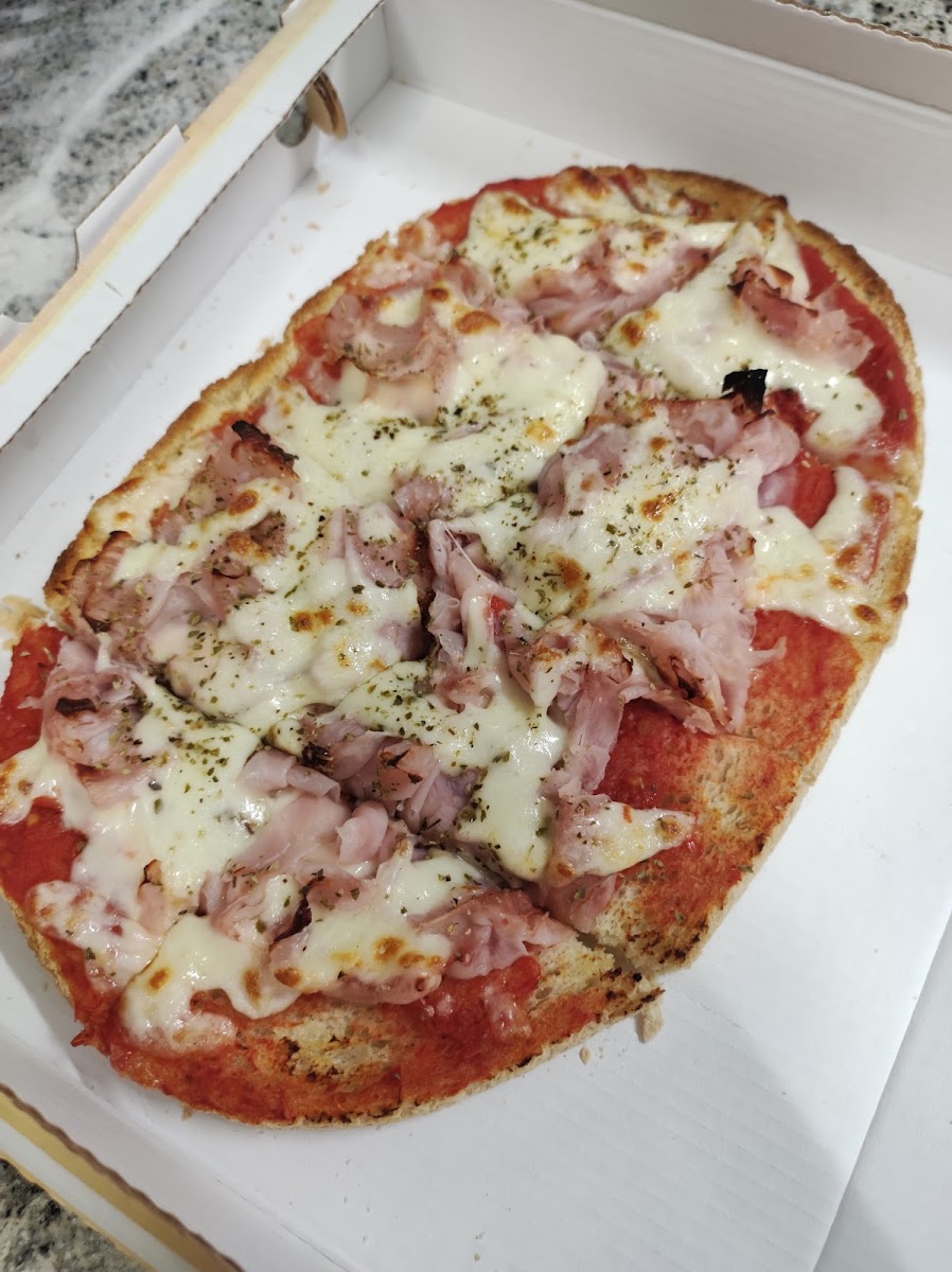 Pizza super gustosa, sottile e croccante, con possibilità di impasti speciali. Gentilezza e affabilità, servizio veloce e prezzi buoni. Il locale è principalmente d'asporto ma ha anche qualche tavolino per il servizio in loco e proprio per questo la mancanza del bagno mi sembra da segnalare, l'avrei gradito anche solo per potermi lavare la mani.